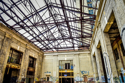 One place that always had my attention stands as the most iconic building in the Detroit area. Michigan Central Station. Opening its doors on January 4th 1914, it was the main stop to catch an Amtrak train to multiple locations all over Michigan and other states. Thousands of people left and greeted their families until 1988 when Amtrak ceased. The great thing about MCS was that the building was bought by Ford Motor Company and is now being restored! This gave me the opportunity on June 22nd, 2018 to go inside and get a tour of one of the most amazing structures ever, without having to sneak in through a side door. The first day the building was open to the public I was there. Hundreds of people gathered outside the doors, just beyond the white fabric covered gate and stood in line to get there chance to see it for themselves. I checked in at the media booth and awaited the blue wristband that allowed me to enter through the side gate and into the building I had wanted to explore for so many years! I was like a kid in a candy shop, trying to control my excited feeling inside. As the gate opened for me to pass through, I saw some of the most amazing architecture i had ever witnessed. Sure, I had taken pictures of Michigan Central from behind the gate prior to this day, but being that close to it was a completely different feeling!